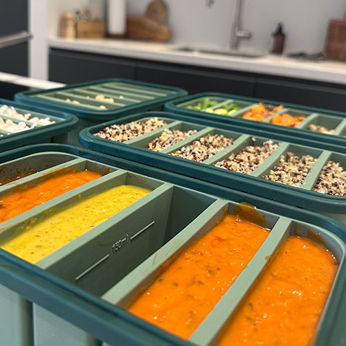 Frosti Bits zijn siliconen meal prep bakjes waarmee je vooruit kookt, porties verdeelt en overzicht houdt in je koelkast en vriezer. Geen losse bakjes in verschillende maten, maar vaste formaten die samen één systeem vormen.