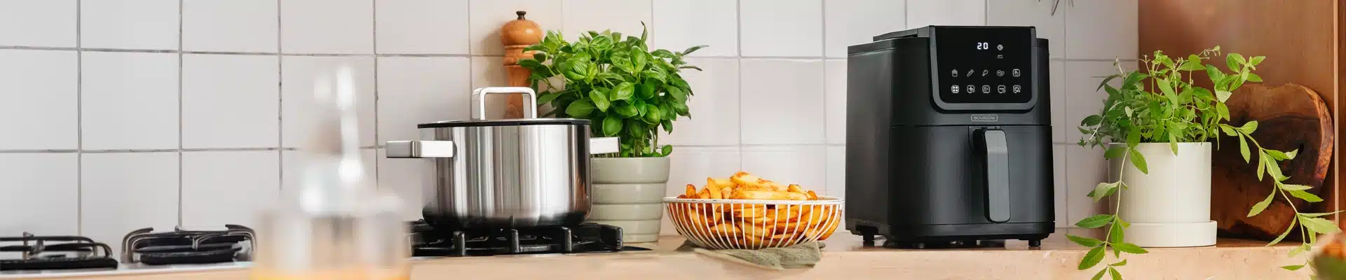 Onze airfryers maken gebruik van geavanceerde hetelucht technologie om je favoriete gerechten te bereiden met tot wel 90% minder vet. Of je nu frietjes, snacks, vlees of groenten wilt bereiden, met een heteluchtfriteuse geniet je van een knapperig resultaat zonder overtollige olie.