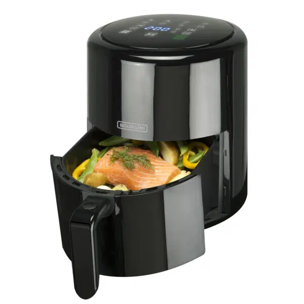 Deze multifunctionele airfryer functioneert ook als heteluchtoven en is uitgerust met een gebruiksvriendelijk digitaal touch bedieningspaneel. Met 8 handige snelkeuzeprogrammaโs kies je eenvoudig de juiste instellingen voor jouw gerecht. Of je nu frites, groente, vlees, vis of deegwaren wilt bereiden, je hebt volledige controle dankzij de instelbare temperatuur van 80 tot 200ยฐC en de timer tot 60 minuten.