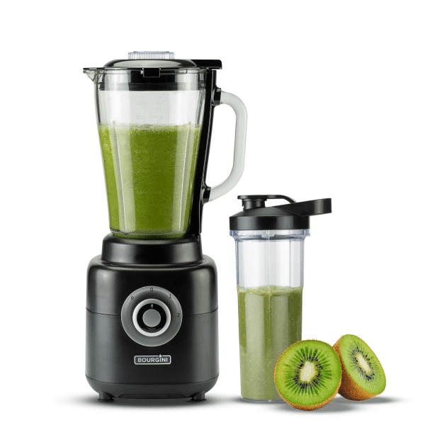 De Power Blender – 1,75L Glazen kan – 1000W + 700ml Sportfles is een veelzijdige en krachtige blender, perfect voor iedereen die van gemak en gezonde voeding houdt. Dankzij de sterke 1000W motor blend je moeiteloos zachte en harde ingrediรซnten, van fruit en groenten tot noten en ijs.