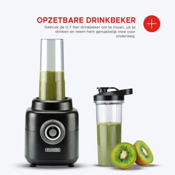 Als extra voordeel wordt deze Power Blender geleverd met een handige 700ml sportfles, zodat je jouw verse smoothies direct mee kunt nemen naar je werk, de sportschool of onderweg.