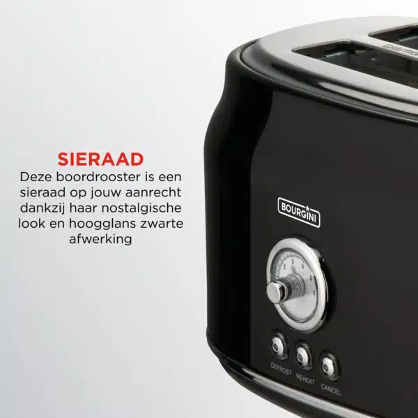 De Retro Toaster – Broodrooster in retro design – Zwart is gemaakt van duurzaam RVS en chroomstaal en heeft een elegante zwarte afwerking met metaalkleurige accenten. Het apparaat is eenvoudig in gebruik en onderhoud, waardoor je moeiteloos elke dag geniet van heerlijk geroosterd brood.