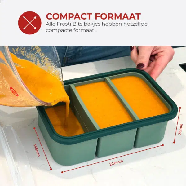 Je gebruikt de bakjes om porties vooruit te bereiden, in te vriezen of in de koelkast te bewaren. Wanneer het tijd is om te eten, druk je de porties eenvoudig uit het bakje en warm je ze op in de magnetron. Zet daarbij het stoomventiel in de deksel open, zodat stoom kan ontsnappen en je maaltijd gelijkmatig warm wordt. Dat scheelt tijd, afwas en vooral mentale ruis aan het einde van de dag.