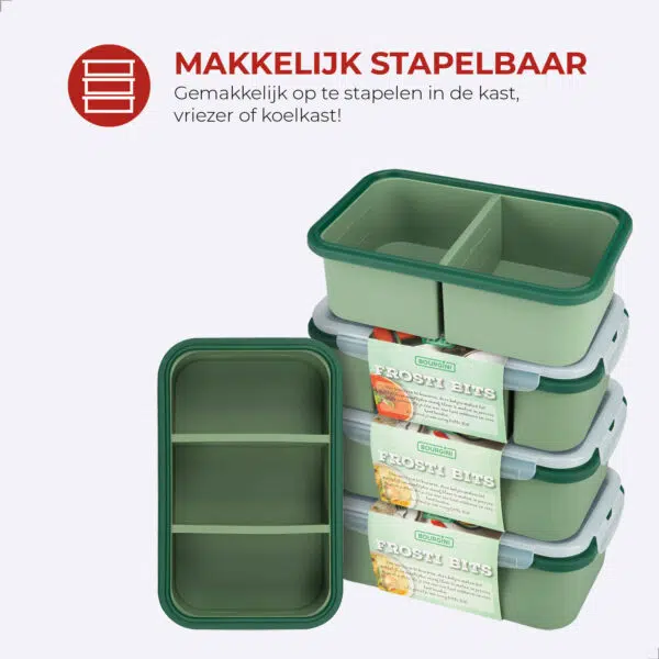 Frosti Bits is ontworpen als een modulair meal prep systeem. Geen losse bakjes die niet stapelen of deksels die zoekraken, maar vaste bouwstenen die je helpen om keuzes vooraf te maken. Met deze set werk je direct met bakjes met meerdere vakjes, wat ideaal is als je begint. Je ziet in รฉรฉn oogopslag hoe een maaltijd is opgebouwd en houdt verschillende onderdelen netjes gescheiden.