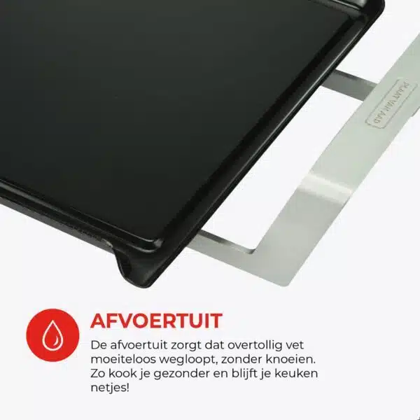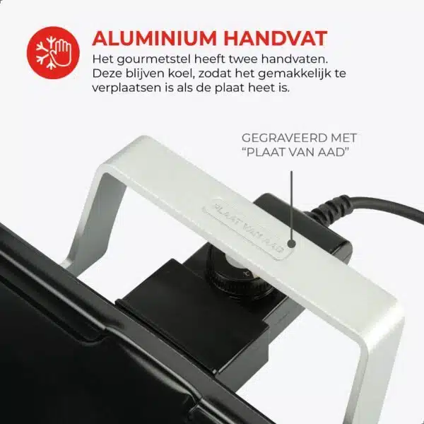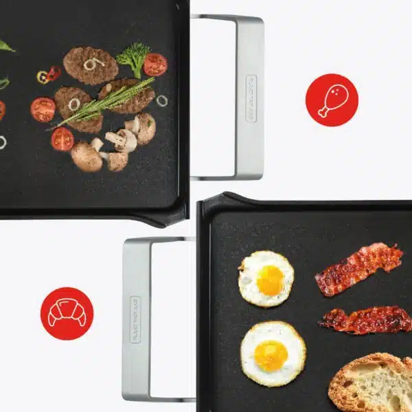Ook in het gebruik voel je de jarenlange ervaring achter het ontwerp. De aluminium handgrepen blijven koel tijdens het bakken en de antislip bodem zorgt ervoor dat de plaat stevig op tafel blijft staan. Na afloop is schoonmaken eenvoudig, want de grillplaat is vaatwasserbestendig. Alles is ontworpen om het moment aan tafel soepel te laten verlopen, van begin tot eind.