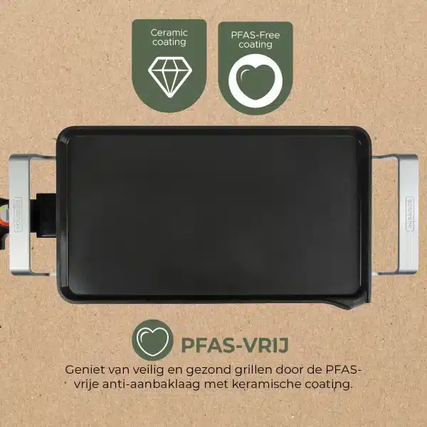 Dankzij de PFAS-vrije keramische PPG Fusion® anti-aanbaklaag heb je weinig olie of boter nodig voor een gezonde maaltijd. De verwijderbare thermostaat met indicatielampje maakt het mogelijk om de temperatuur nauwkeurig in te stellen.
