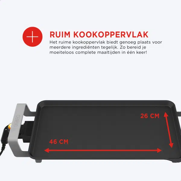 Met de handmatig instelbare thermostaat bepaal je zelf de ideale temperatuur voor jouw gerechten, van laag voor delicate ingrediënten tot hoog voor een perfecte korst. Na gebruik is de bakplaat eenvoudig schoon te maken en kan hij zelfs in de vaatwasser.