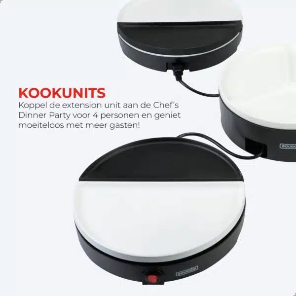 Met een vermogen van 250 Watt per unit biedt deze uitbreidingsset krachtige prestaties. Combineer de uitbreidingsset met de Chef’s Dinner Party basisset 4 persoons of 5 persoons en creëer een gezellige setting waarbij iedereen zijn favoriete gerechten kan bereiden.