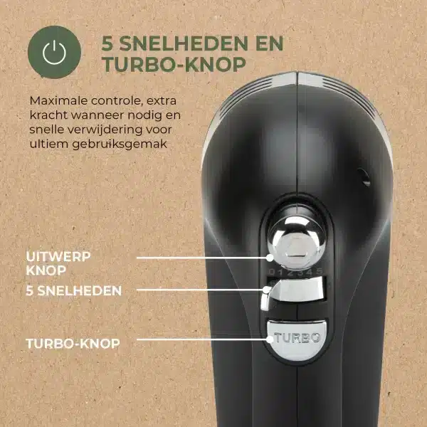 De Elements Hand Mixer is de ideale keukenhulp voor moeiteloos mixen, kloppen en kneden. Met een krachtige 400W motor en 5 instelbare snelheden, inclusief een turbofunctie, heb je volledige controle over elke bereiding.