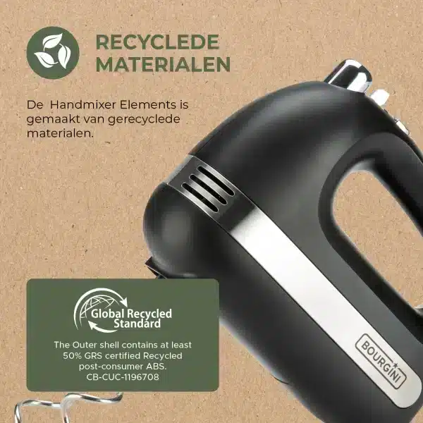 Met de Elements Hand Mixer bereid je snel en eenvoudig heerlijke gerechten, terwijl je bijdraagt aan een duurzamere wereld.