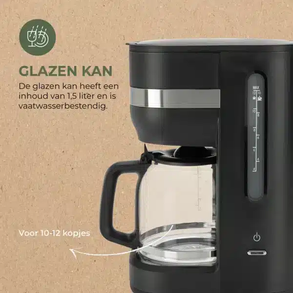 Geniet elke dag van een heerlijke kop filterkoffie met het Elements Koffiezetapparaat. Dit duurzame koffiezetapparaat heeft een royale capaciteit van 1,5 liter, waarmee je moeiteloos 10 tot 12 kopjes zet – perfect voor grote gezelschappen of een ontspannen start van je dag.