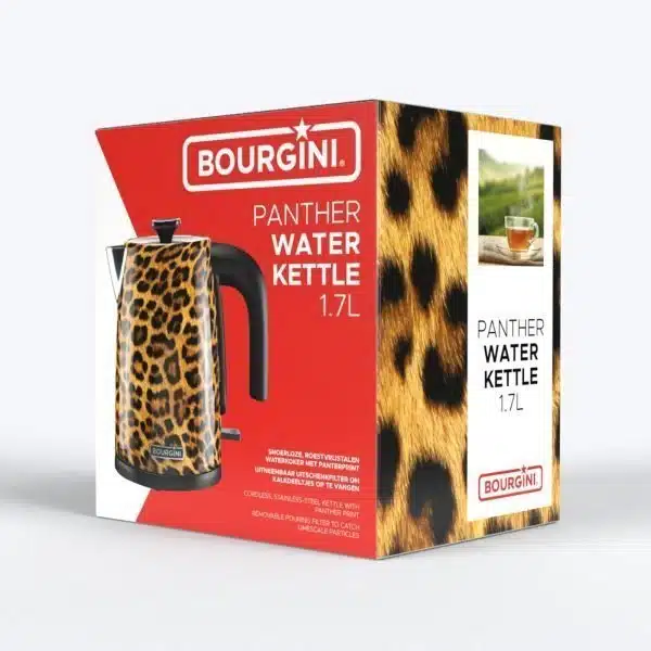 Voeg een vleugje wilde elegantie toe aan jouw keuken met onze Trendy Panter Waterkoker. Perfect als geschenk of om je eigen keuken een stijlvolle upgrade te geven!