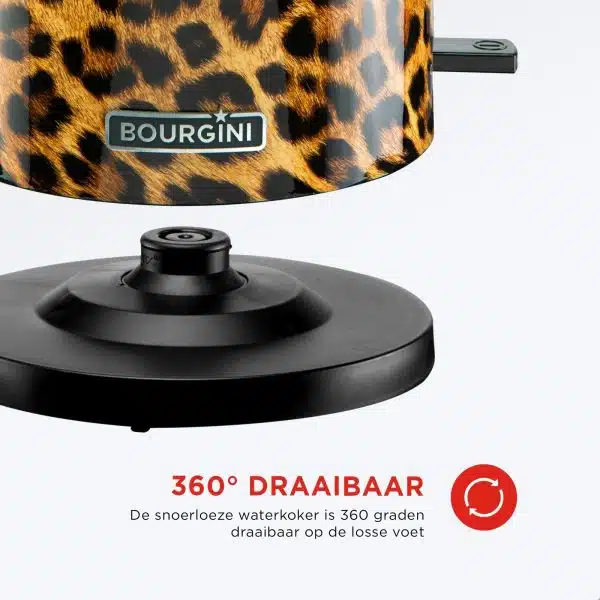 De Trendy Panter Waterkoker beschikt over een ergonomisch ontworpen handgreep voor comfortabel gebruik en een automatische uitschakelfunctie voor extra veiligheid. De 360 graden draaibare basis maakt het eenvoudig om de waterkoker in elke richting te plaatsen, ideaal voor zowel links- als rechtshandige gebruikers.
